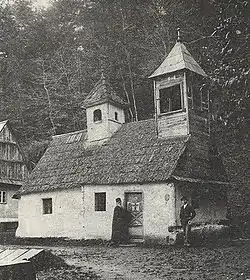 ![]() Vechea biserică de lemn de la Schitul Foltea, astăzi dispărută | |