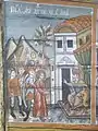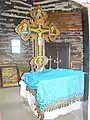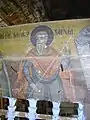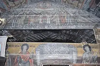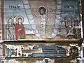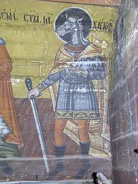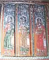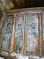 Dintre chipurile de sfinți, atrage atenția cel al Sfântului Cristofor, cu cap de țap. Așa îl consemnează tradiția satului, ca sfântul cu cap de țap. În iconografia ortodoxă și catolică mai sunt consemnate reprezentări ale sfântului cu cap de câine sau de oaie. Toate aceste reprezentări animaliere își au rădăcinile în legendele sfinților. Există două variante. În prima dintre ele se spune că însuși Cristofor i s-ar fi rugat lui Dumnezeu să îi ia frumusețea spre a nu sminti pe nimeni, iar în a doua se povestește că Cristofor ar fi făcut parte dintr-un trib al chinocefalilor (oameni cu cap de câine, menționați din timpuri vechi), că s-a convertit la creștinism și a fost ucis ca martir al lui Hristos.