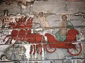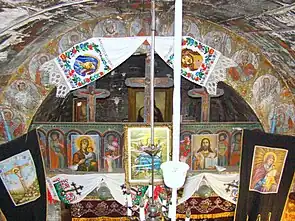 Expresive sunt picturile din altar: „Coborârea de pe cruce”, „Punerea în mormânt” și „Învierea lui Hristos din morți”, alături de Sfinți Părinți și prooroci.
