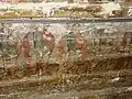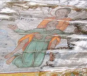 Pictura este puternic degradată, mai ales cea din pronaos. Inscripția aflată în altar consmenează numele zugravului și a preotului paroh de la acea vreme: „Această sfântă biserică s-au zugrăvit supt stăpânirea parohului Simeon Pop, cu toată strădania ficuratorului Onigă Onuț, cu ajutorul domnului Miclea Pal, anul 1838 iunie 29. Mâna lui Ioan Prodan zugravul.” Ioan Prodan este cel care a pictat și bisericile de lemn din Domnin și Bulgari[3].