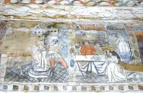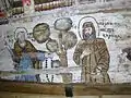 Pictura murală, păstrată în proporție mai mare în altar și naos, a fost realizată de Toader Hodor, un zugrav originar din Vișeu-de-Mijloc. Prezența lui în Maramureș e semnalată abia în primii ani ai secolului XIX, în câteva biserici de pe cursul inferior al Izei și din satele din vecinătate: Cornești, Bârsana (1806), Văleni (1807), și Nănești (1809).[3]