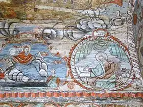 Bolta altarului înfățișează Încoronarea Fecioarei, temă de glorificare a Maicii Domnului, de origine apuseană, zugrăvită în altar în legătură cu dogma întrupării.[4]