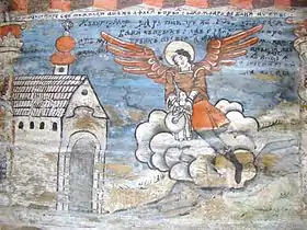 sus: Înălțarea sfântului Ilie, Înger trâmbițând; Jos: Evanghelistul Ioan, Soborul Arhanghelilor.JPG.webp)