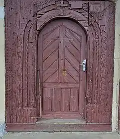 Intrarea în cor și stâlpii care susțin turnul-clopotniță
