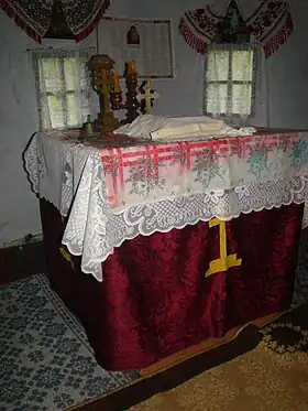 Eventuala zestre picturală nu poate fi indentificată astăzi din pricina stratului interior și exterior de tencuială; căptușeala de scânduri a bolții a fost, de asemenea, văruită. În cazul în care s-ar recupera unele fragmente, acestea ar fi atribuite, cu siguranță, „popii” Ioan Zugravul din Deva, cel care, în anul 1770, executa o minunată icoană a „Sfântului Ierarh Nicolae”. Se păstrează, în schimb, mai multe piese sculpturale, între care se remarcă un sfeșnic cu cinci brațe, realizat în 1813.