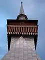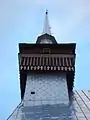 Biserica are un plan dreptunghiular, o absidă mult decroșată, ce se termină spre răsărit în muchie, fapt destul de rar întâlnit la bisericile de lemn din Transilvania. Bârnele orizontale ale pereților sunt îmbinate printr-un sistem de crestături complicate, ce au asigurat durabilitatea edificiului. La colțuri sunt console cu retrageri succesive, în trepte. Turnul se înalță peste pronaos, are peste 22 m, baza formată din patru grinzi masive ce susțin galeria clopotelor, puțin mai largă decât baza, coiful piramidal și săgeata coifului, octogonală la bază. Naosul și altarul au la interior bolți semicilindrice. Pereții naosului au în exterior console ce corespund arcurilor dublou din extradosul bolții, care privite din profil sunt imagini inversate ale „capului de cal", motiv zoomorf larg răspândit în arta populară românească.