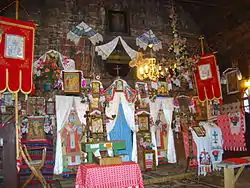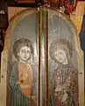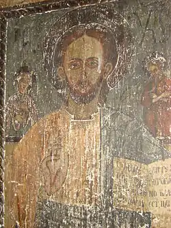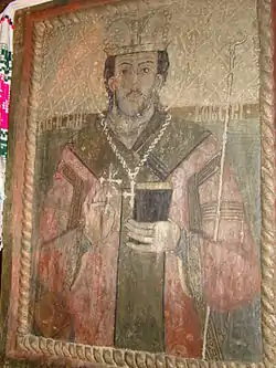 Pe iconostas, în jurul ușii împărătești se poate citi parțial pisania lăsată de pictorul David Zugravu de la Curtea de Argeș: "Ani D[o]mnulu[i] 1750 sau zugrăvit David ... nou făcut și sau zugrăvit fiind și ... Pușla Ion și Po[pa] Mihai. Foarte tare au stăr[uit]...".