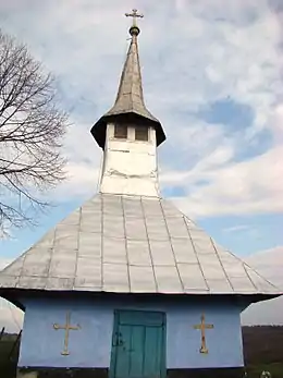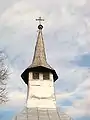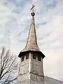 Acoperișul este fragmentat în două părți distincte, la navă și la absidă. Turnul se ridică deasupra tindei, de o formă nu prea zveltă, poate modificat și el, cu ocazia uneia din renovările trecute. Oricum, balconul închis, căptușit de jur împrejur cu tablă și prevăzut pe fiecare latură cu câte două ferestruici cu rol fonic, nu avea la început această înfățișare. Învelișul de tablă a schimbat și linia coifului, a săgeții.