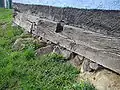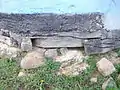 Temelia este scundă, pietrele s-au afundat aproape de tot în pământ din cauza umezelii cauzate de apa căzută foarte aproape de temelie, atât datorită lipsei din plan a prispei, cât și a streașinei foarte retrase. La absidă, bârnele din cununile pereților sunt prinse între ele prin cheotorile în formă de „T", cheotori care au fost executate numai din topor, în vremea în care fierăstrăul era o unealtă foarte rară și, evident, foarte scumpă. Trei bârne sunt prelungite în console discrete, în două variante: cu aripile duble - la colțurile navei - și cu o singură aripă la fiecare din cei cinci pereți ai absidei.