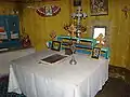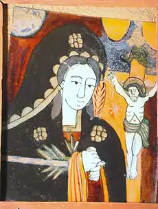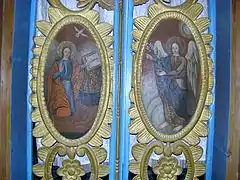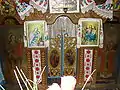 Trei icoane pe lemn (din care una cu inscripția: „Această icoană s-au făcut de Crevila Todora"), databile în secolul al XVIII-lea, și altele pe sticlă, provenite de la Nicula, împreună cu ștergarele vechi ce atârnă pe pereți, constituie tot decorul interior al acestei arhaice construcții bisericești.