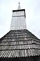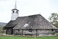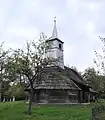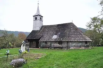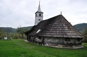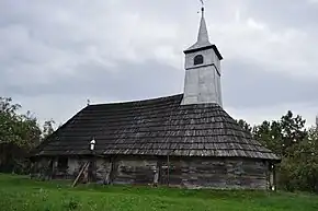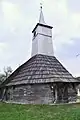 Biserica de lemn a fost construită în secolul XVIII din bârne masive de stejar îmbinate în cheotori. Este menționată doar pe harta iosefină a Transilvaniei (1769-1773) și în tabelele conscripției din anii 1829-1831. Aspectul actual se datorează amplei renovări din 1784, an în care acoperișul a fost modificat, iar peste pronaos și-a făcut apariția turnul-clopotniță suplu, cu foișor din scânduri și fleșă ascuțită, ambele învelite, în prezent, în tablă; la acoperișul propriu-zis s-a păstrat învelitoarea clasică de șiță, reînnoită, ultima oară, în 2006. Având pereții ridicați direct pe pământ, edificiul, de mari dimensiuni, înfățișează planul dreptunghiular arhaic, cu terminațiile pentagonale ale altarului și ale pronaosului nedecroșate. Accesul în sfântul lăcaș se realizează prin două uși, amplasate pe latura sudică.