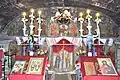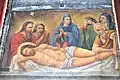 În a doua jumătate a secolului al XVIII-lea, obștea ortodoxă a tocmit un zugrav pentru împodobirea pereților. Deși pisania de deasupra ușii naosului s-a curățat, analogiile dintre acest decor iconografic și cele păstrate la interiorul bisericilor din Valea Lungă și Dumbrăvița dezvăluie o paternitate comună. Pictura, de foarte bună calitate artistică, a fost realizată în două etape: prima datează din secolul XVIII și înfățișează în medalioane rotunde chipurile Sfinților Prooroci, pictați pe pereții naosului, ușile împărătești datează din aceeași perioadă; a doua etapă datează din secolul XIX, o parte din pictura catapetesmei, unde este reprezentat Iisus judecător, înconjurat de Sfinții Ierarhi. Spălat pe alocuri de ploi, acest veșmânt pictural a fost supus, în anul 1922, intervenției neinspirate a zugravului local Lăpiță Lupaș, alterându-i-se, prin urmare, farmecul inițial[2].