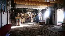 În interior, biserica este împărțită în patru încăperi: pridvor, pronaos, naos și altar. În biserică se intră printr-un pridvor aflat pe latura de sud.