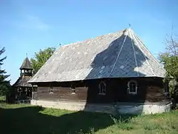 Pereții, din lemn de brad, delimitează o navă dreptunghiulară și un altar ușor decroșat, semicircular. Pronaosul și naosul sunt acoperite de o boltă semicilindrică, retrasă de la linia pereților prin intermediul unei bârne dispuse în trepte. Altarul are o boltă de aceeași formă, îngustată prin mijlocirea suprafețelor plane, intersectată de trei fâșii curbe. După sistemul de construcție, edificiul pare anterior secolului al XIX-lea, anul 1836 indicând, probabil, o refacere. Acest an este notat în partea de vest, în stânga intrării. Vârsta reală fusese crestată în ancadramentu ușii originare, dispărut cu prilejul lucrărilor de renovare.