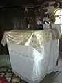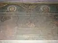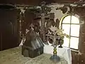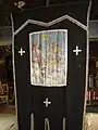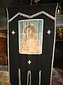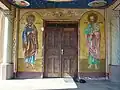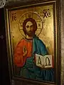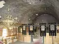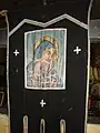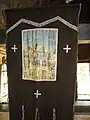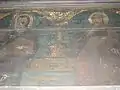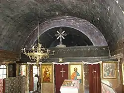 La interior, stratul de tencuială poate ascunde vestigiile vreunei picturi prejudiciate la strămutare. Tâmpla se rezumă la friza Apostolilor, cu Iisus Hristos, așezați pe laviță, între arcade; este datată de pisania de la 1836, autorul ei aparținând școlii de la Feisa. Ușile împărătești reprezintă Buna Vestire și pot fi atribuite lui popa Marcu[3].