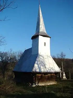 Biserica de lemn „Sfântul Nicolae” a fost construită între anii 1826-1829, conform pisaniei: „Anu 1826 sau început aceasta st beaserică și sau gătatu 1829, fiind împărat Franțișc Ferdinant și episcopu Ioan Moga, și pătrupop Ioan Duma, iară preotul locului Dumitru Baldi, supt curatoriia lui Bilea Crăciunaș. Meșterul au fostu Criste Todoru din Ciubăncuțea.”[2] Lăcașul de cult, de plan rectangular, cu pronaos, naos și altar poligonal, mai îngust ca restul clădirii, a fost înălțat pe o fundație de piatră. Cununile de bârne din partea superioară a pereților, depășesc fațadele, alcătuind console, numite aripi, cu rol constructiv, dar și decorativ. Deasupra pronaosului este prins turnul-clopotniță, prevăzut cu galerie cu arcade și încoronat cu un coif ascuțit. În interior pronaosul are un tavan obișnuit, iar naosul și altarul au fost acoperite cu câte o boltă semicilindrică din scânduri. Biserica a fost precedată de o construcție mai veche, din moment ce într-un document din 1658 este menționat preotul satului. Din inventarul vechiului lăcaș poate să provină icoana Isus Pantocrator datată la 1667. Celelalte icoane pe lemn reprezentând Botezul Domnului, Coborârea la iad, Răstignirea, Maica Domnului cu Pruncul, Sfântul Nicolae și Arhanghelul Mihail sunt din secolul al XVIII-lea.