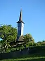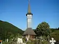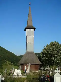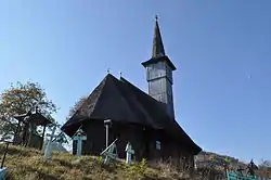 Lăcașul înfățișează o planimetrie arhaică, anume cea a unui dreptunghi cu absida pentagonală decroșată, prevăzut, în partea opusă, cu o terminație poligonală în trei laturi; tradiția potrivit căreia biserica ar fi fost înălțată în jurul anului 1600 își găsește astfel confirmarea. Pisania care cuprindea datarea începuturilor acestui edificiu a dispărut însă în cursul unui vechi șantier de supraînălțare a pereților bisericii. Acoperișul cu pante repezi, precum și fleșa înaltă a turnului-clopotniță impunător (14 m), sunt învelite în șiță. Accesul în sfântul lăcaș se face prin două uși, amplasate pe laturile de sud și de vest.