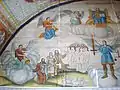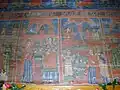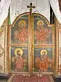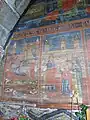 La interior se constată existența a două etape distincte de pictură. Peste cea realizată în anul 1782 de Iosif Zugravul, realizatorul ansamblurilor murale arădene de la Șoimuș-Buceava și Mădrigești, s-a suprapus în 1810, aproape în totalitate, un nou decor mural, datorat meșterilor Ioan din Poiana Sibiului și Mihai Borșoș; icoanele din pronaos, atribuite lui Constantin Zugravul din Rișca, sunt contemporane primei etape.