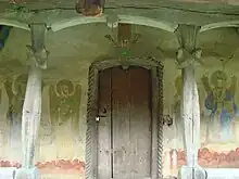 Icoanele mari, împărătești, reprezentând pe Sfântul Nicolae cu Iisus și Maria în spatele tronului și Maria cu pruncul (cu arhanghelii în spatele tronului) sunt datate 1790; cea din urmă poartă semnătura lui Ioan zugravu din Roșiuța[8].
