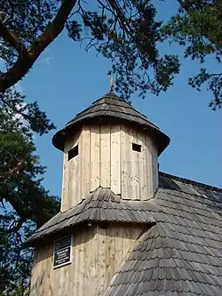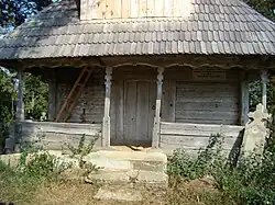 Lăcașul de cult și cimitirul se află deasupra văii Blahniței; peste prispă a fost adăugată ulterior o clopotniță, pe două nivele, separate prin poale de șiță[7].