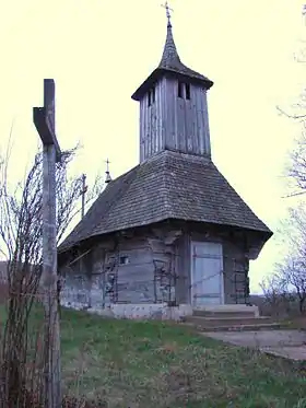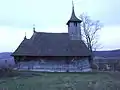 Biserica de lemn „Adormirea Maicii Domnului" a fost construită în secolul al XVII-lea între satele Copăceni și Vintere și a fost mutată pe locul actual în a doua jumătate a secolului al XVIII-lea. Planul se aseamănă cu o corabie datorită faptului că tinda și absida sunt încăperi poligonale, cu pereții oblici, destul de lungi. Interesant este și modul de construire al absidei, prin decroșarea peretelui sudic. Linia streașinei urmează întocmai linia pereților, care sunt construiți din scânduri („blăni") de gorun, îmbinate în linii ce se întretaie sau se întrepătrund și legate la colțuri în „cârlig" cu crestături complicate. Portalul este ornamentat cu cercuri și semicercuri înlănțuite în șiruri verticale, alături de frânghii, linii oblice și rozete. Deasupra tindei se ridică turnul scund, cu coif piramidal și săgeată. La extremitățile estice ale coamelor acoperișului naosului și altarului sunt două turnuri miniaturale cu funcție estetică. După 1950 s-a adăugat pardoseala de scânduri, a fost tencuită în interior și s-a renunțat la sistemul vechi de boltire, preferându-se tavanul drept. În jurul bisericii sunt cruci cioplite în lemn de meșterul popular Teodor Bondar.
