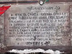 Anul ridicării bisericii a fost transmis într-o „însemnare” peste intrarea în naosul bisericii. Textul însemnării, scris în slova veacului 19, într-o grafie de tranziție chirilică-latinească, reține următoarele: „Aciastă sfântă biserică sau făcut de mine protopop[u]l Ioan, Ilinca ere[i]ța, și Andrei Brăileanu, Ili[n]ca la leat 7313 și li anul 1865 sa zugrăvit cu toate cheltuielile d-lor Mihalache Boncescu din R. Vâlcea, Mitu Stelea, Ana Matei, S. Canfira, Andrei V. Floarea, Pavel Bă..., Petre, Pătru, Mariea, Stancu, Năstase, Dumitra, preotu Matei, Ioana ereița, Ghe[orghe] Bradeianul, Nită Brădencul, Floarea, Gheorghie, Stanca, Ion, Matei, Maria, 1865.” Anul construcției este redat în era bizantină 7313, adică anii 1804-1805 ai erei noastre. Zugrăvitul este datat din 1865.