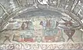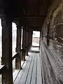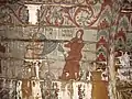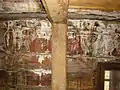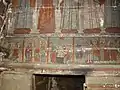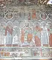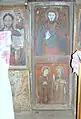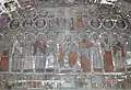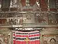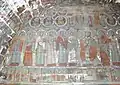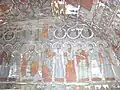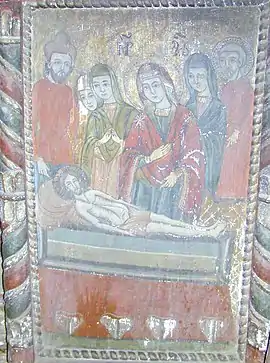 Pictura interiorului, executată în 1771, este în mare parte distrusă. Pereții bisericii au fost „grunduiți” inițial cu un strat de lapte de var și nisip fin, peste care s-au aplicat culorile în ulei. Picturile sunt asemănătoare cu ale altor biserici din zonă, ca urmare a implicării aceluiași autor în crearea acestora, pe nume Nichita. Interiorul încă mai conservă imagini reprezentând sfinți: Nicolae, Spiridon, Grigore, Vasile, Ioan. Elemente picturale complexe apar și în scena crucificării, în rânduirea apostolilor în jurul Mântuitorului, cât și în scenele ce prezintă copilăria lui Iisus. Picturile exterioare lipsesc aproape cu desăvârșire ca urmare a intemperiilor de peste ani.