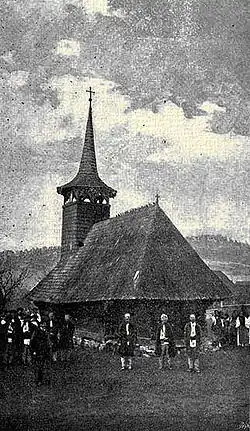 Biserica a fost vizitată de protopopul zonei Vasile Szilasi, în 11 martie 1846, și descrisă astfel: „Beserica ad SS Archangelos, cu turnu cu totu de lemn, în turnu două clopote. Intrarea în biserică pe sub turnu are ușie de scanduri neblanită cu închisoare de lemn. În biserica femeilor podu nepoditu, peretele între biserica bărbaților nedesfundatu, lipitu cu icoane de hârtie. O mesuție cu facie de canepe alba, pe mauție ieste de glagie mici. Intrarea în Biserica Bărbaților pe uși care e de scanduri ne blănită, închisoarea la usie de lemn. Strana crestinească din penare de lotbe. Mmasutie pentru parastase de lotbe pe 4 pociumbi învelită cu o foaie de canabe cu roșu invrestată, dipe masă redicate o cruce de lemn de care stă rezimată Icoana Maicei Preaciste de glagie mare și doao mai mici totu de glagie., un caun de sediut de lotbe. Fruntariu [are] icoane capitale in fruntariu de glagie, una de lemn D virginis, totu in fruntariu 10 icoane mai mici de glagie. La mijlocu o cruce lată tăiată dintro scandure zugrevită, fruntariu nezugrevitu. Intrarea in altariu pe 2 uși, care ambe se deschidu in doao laturi și sunt zugrevite. In altariu prestolul de un trunchiu facutu, invelitu cu o facie albă de cănebe, și o neframe de metasie galbină, deasupra un pixis de lemnu pentru ținerea Sinteloru, un clopoțielu de ..., doao fesnicucie de lemnu festite, și o cruce mare de lemnu redicată, pentru proscomedie ... o scandure lată, lungă către peretele altarului, cu o facie albă de penze, asemene dupa cea cureită, parieti altarului zugreviti. Intrun perete un prapor de penze feștitu acătiat, care singur elu la biserica. ...”[3]