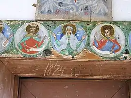 Din pictura de bună calitate, realizată în timpul șantierului de renovare de la 1825, s-au mai păstrat ușile împărătești „Buna Vestire”, cu chipurile lui Solomon și David în medalioane, stinghea cu portretele proorocilor și al Mariei, în medalioane, dar și panourile decorative cu căni cu flori[5].