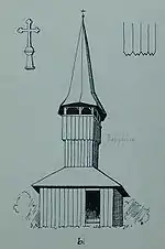 Schiţa clopotniţei bisericii de lemn din Drighiu, judeţul Sălaj