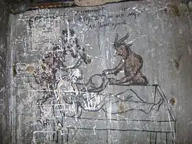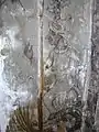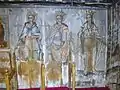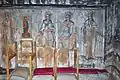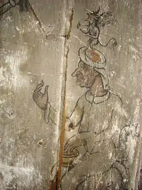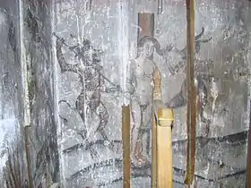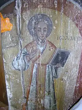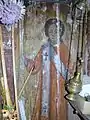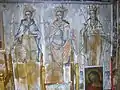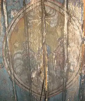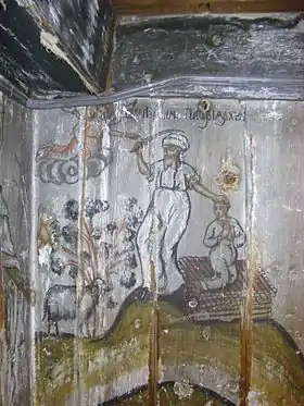 Pictura de pe bolta naosului este rău stricată, doar vag se mai pot distinge scene din Patimile Mântuitorului, în apexul bolții apare, conform canoanelor, Isus Panthocrator, dar și aici pictura este rău degradată. Pictura din tindă s-a conservat mai bine. Alături de scene biblice, apar aici și scene moralizatoare[2].