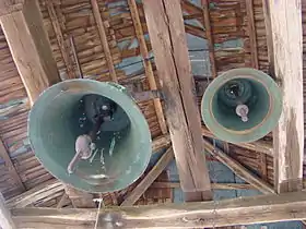 În vestul bisericii se păstrează o masivă clopotniță, construită dintr-un puternic schelet din lemn, cu acoperișul în patru pante și cu învelitoare de tablă.