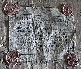 Un alt eveniment important în viața acestei comunități are loc în anul 1839 cînd episcopul Ioan Lemeni sfințește această biserică. Momentul este consemnat în documentul pecetluit în cele patru colțuri pe masa altarului. Acest document ne informează: "Această sfântă besearică întru cinstea [Sfântului Erarh Nic]olae spre mărirea lui Dumnezeu zidită s-au sfințit prin Ioann Lemeni a Românilor, Grecilor, Sârbilor de leajea grecească onită în Marele Principat al Ardealului și părțile lui înpreunate Episcop al Făgărașului în anul 1839 luna lui August 13". Elementele care nu pot fi citite pot fi recuperate din alte surse. Astfel, șematismele bisericii greco-catolice precizează faptul că hramul acestei biserici este "Sfântul Ierarh Nicolae"[3] iar data exactă a consacrării a fost 30 august 1839[4].
