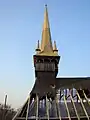 Aspectul exterior al bisericii este dominat de fleșa înaltă a bisericii. Turnul-clopotniță, așezat peste pronaos are foișor în console, cu galerie deschisă. La baza fleșei, în cele 4 colțuri se regăsește câte un mic turn. Acoperișul este unitar pentru toată biserica.