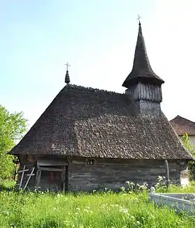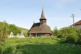 Biserica de lemn „Sfinții Arhangheli Mihail și Gavriil” are ca data construcției: secolul al XVIII-lea. Nu se cunosc nici numele autorului picturii murale, nici data execuției acesteia. O inscripție cu litere chirilice, aflată la mijlocul iconostasului, menționează un „Filipașcu Voievod”.