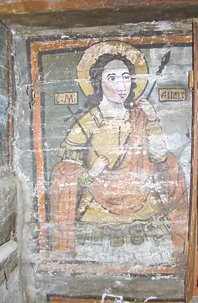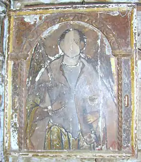 Pictura: Pictura murală datează de la sfârșitul secolului al XVIII-lea și a fost realizată de un meșter din zonă, într-un stil de factură populară, naivă, cu o cromatică veselă. Picturile din pronaos s-au distrus complet, iar tavanul a fost înlocuit. Pe bolta semicilindrică a naosului apar scene din Ciclul Patimilor, cei patru evangheliști, prooroci și mucenici în medalion. Tot pe bolta naosului se disting scenele Vindecarea orbului și Duminica Tomii. Pe peretele de vest este reprezentată scena Jertfei lui Isaac, în rest pictura se păstrează încă în partea inferioară a pereților, reprezentând sfinți, înnegrită puternic pe boltă. Iconostasul și icoanele împărătești au fost pictate în a doua jumatate a secolului al XVIII-lea. Deasupra icoanelor împărătești se găsește registrul apostolilor încadrându-l pe Iisus pe tron. Tâmpla este încununată de un Trimorphon: Iisus pe cruce flancat de Maria și Ioan, pictura fiind însă deteriorată. Pe iconostas apare înscris cu litere chirilice numele unui Filipașcu voievod, probabil ctitorul bisericii vechi.