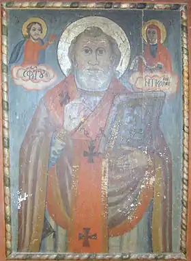 Patrimoniul: Se păstrează cele 4 icoane împărătești: Sf. Nicolae, Maica Domnului cu Pruncul, Iisus Pantocrator, Arhanghelul Mihail, realizate în secolul al XVIII-lea. Nu se păstrează ușile împărătești, iar partea de jos a iconostasului a fost decorată cu motive florale. Biserica păstrează două icoane de lemn de secol XVIII: Încoronarea Domnului și Deisis, flancând ușa de intrare în naos.