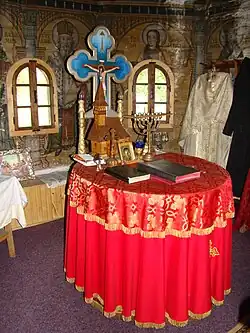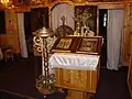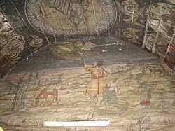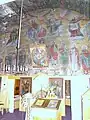 Pictura din interior, realizată la 1791, an consemnat pe bolta naosului, a fost atribuită lui Simion Silaghi, din Abrud, asemenea icoanelor împărătești ale iconostasului realizate la 1790. Candelabrul din lemn este datat tot din 1791.