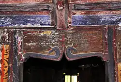 Portalul de la intrarea în naos păstrează următoarea îndemnare: „Cine va intra întru această sfăntă şi Dumn[e]zăiască biserică cu inima năcurată nu va dibăndi înpărăţiea cerului”. Foto: 2009