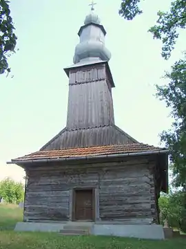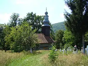 Construcția În mod cert construcția actualei biserici este rezultatul unei renovări din temelie, cu adăugarea unui soclu de piatră și înlocuirea tălpilor groase. Bârnele, fiind fasonate, s-au așezat în cununi perfect suprapuse, dând peretelui o suprafață netedă peste care s-au bătut apoi nuiele care să susțină tencuiala. Cu ocazia ultimei renovări, vechile console ale bârnelor din partea de sus a perețelui au fost eliminate și s-au păstrat doar console de la cele trei bârne orizontale de la streașină (numite de localnici”cursuraie”), bârne care susțin acoperișul cu învelitoare de șindrilă, azi cu țiglă. Șarpanta este de dată recentă. Ferestrele inițiale mici (asa cum se vede una la altar) au fost mult mărite. Turnul cu bulbi este și el un rezultat al ultimei renovări, când învelișul din sindrilă a fost înlocuit cu unul de tablă.