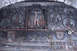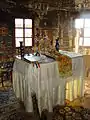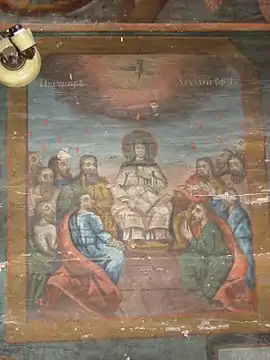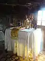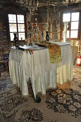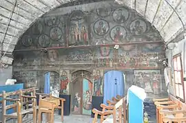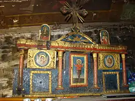 Icoane În biserică se păstrează câteve icoane pe lemn cu temele: ”Sf.Nicolae”, ”Maria cu pruncul”, ”Iisus”, ”Duminica orbului”, o icoană pe lemn reprezentând în patru casete pe Isus, Maria, Sf.Nicolae, un arhanghel și Botezul lui Isus. Alte icoane de aici se păstrează la mănăstirea Arad-Gai. Cărțile S-au păstrat în biserică mai multe tipărituri: Catavasier, Râmnic, 1708, Catavasier, 1764 (:cumpărat la 1771”); Cazanie (“donate la 1765”); Evanghelie, 1765 (pe care sunt însemnate manuscrise: ”donată in 1775”. Se mai povestește că, de groaza turcilor, preotul satului a fugit cu paștele pe un deal unde a dat paștele populației, fugită și ea. De atunci dealul se numeste Dealul Popii ,pe la anul 1541”. În biserică se mai păstrează două cărți manuscrise; Chiriacodromion, 1732 (donat la 1755) și un Octoih (donat la 1781).