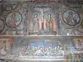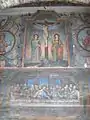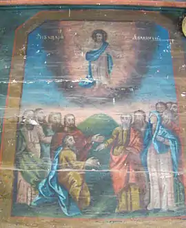 Pictura În “fișa de monument” întocmită în anul 1960 se arată următoarele: ” Înainte vreme biserica a fost tencuită…pe nuiele la exterior. Prin tencuire s-au distrus majoritatea picturilor. Ni s-au păstrat picturile de pe iconostas, din altar și de pe peretele despărțitor dintre tinda femeilor și naos. Pe acest perete găsim portretele a șase regi, avându-l în mijloc pe Dumnezeu și un arhanghel. Între figurile umane sânt răspândite un cal înaripat, o oaie , un vultur și un animal cu cap de om. Pe iconostas în partea inferioară sunt scenele: Nașterea Domnului, Botezul, Învierea, Cina cea de taină, Înălțarea la cer, Adormirea Maicii Domnului. Din motive de simetrie nu se respectă cursul normal al vieții lui Isus. Altarul are pe pereții laterali reprezentate figurile a nouă ierarhi și Jertfa lui Avraam, pe boltă, Iisus, Duhul Sfânt și când au omorât Cain pe Abel. Pictura executată pe la mijlocul sec. al XIX-lea de un meșter, probabil local, care a păstrat în linii mari canoanele fixate în acest sens, dar fără un prea mare simț artistic. Coriolan Petranu scrie că: ”pictura din Ionești e înrudită cu cea din Țărmure, poate este opera aceluiași maestru Ioan Demetrovici din Timișoara”. Nu avem nici un motiv a ne îndoi de presupunerea lui Petranu, cu atât mai mult cu cât același zugrav semnase și pictura bisericii învecinate de la Târnava de Criș. Pictura datează din jurul anului 1840. Pe piciorul mesei din altar (vizibil și acum) scrie ”Florea Dănilă 1892”. Este cu siguranță anul renovării din temelie a bisericii.