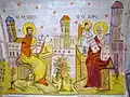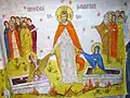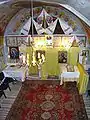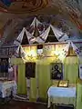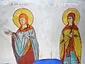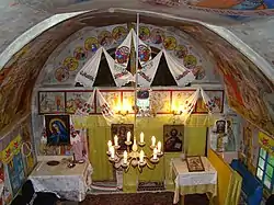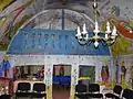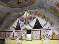 Pictura. Ansamblul de pictură murală original nu se păstrează. Pereții de lemn au fost tencuiți și apoi împodobiți cu o pictură de o factură neobizantină, din prima jumătate a secolului XX-lea, despre care tradiția satului spune că ar fi fost facută de călugări iconari de la Nicula. Aceasta înfățișează figuri de sfinți și pe cei patru evangheliști.