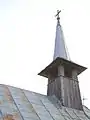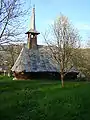 Vedere de ansamblu din sud a bisericii de lemn din Lacu