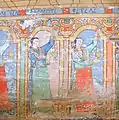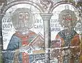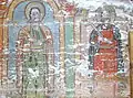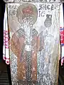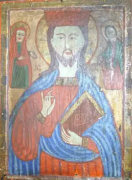 Detaliu catapeteasmă: Maica Domnului, chipuri de prooroci, icoane de patrimoniu pe lemn: Înălțarea lui Iisus și Iisus Pantrocator