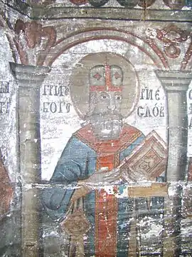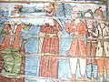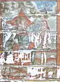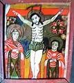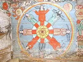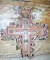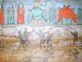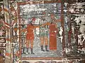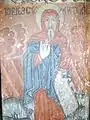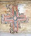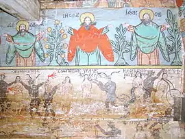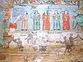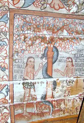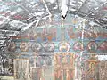 Pictura lui Opriș Gheorghe, a survenit în urma unor reparații, păstrându-se stilul și caracteristicile originale, așa cum se poate vedea din desfășurarea registrelor și tematicii, cât și din paleta culorilor utilizate, în cromatica tradiției locale. În pronaos se poate admira o Roată a Vieții, vegheată de Soare și Lună, antropomorfizate, cu marcarea în grafie chirilică a principalelor etape ale vieții omului, simbolizate prin chipuri umane în locul spițelor. Se mai pot vedea Pomul Vieții între Avraam si Isac, Pedepsele Iadului cu draci, ce poartă coarne, Ciclul Fecioarelor Înțelepte, al celor Nebune ș.a. În naos se păstrează pe peretele nordic un registru cu Sfinți stând în picioare, ținând în brațe câte o cruce mare, iar pe cel sudic scene din Noul Testament ca: De la Anna la Caiafa, La Pilat, Drumul Crucii, Coborârea de pe Cruce, Punerea în Mormânt și altele, într-o desfășurare epică originală[2].
