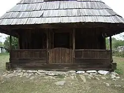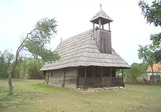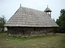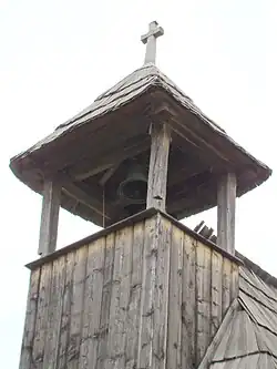 Acoperișul este învelit în șiță, cu o miniclopotniță peste prispă, adăugată ulterior.