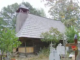 Biserica, construită din bârne de stejar, are ca moment al ridicării anul 1791, ctitorii fiind Pârvu Cucu, Nicolae și Pătru Dorlete, Ștefan și Preda Răgioiu, Staicu Crivăț. Pomelnicul, înșiruit pe nouă coloane, cu foarte multe nume, pe panoul din proscomidie, se referă la ctitorii importantelor renovări de la mijlocul veacului XIX[2].