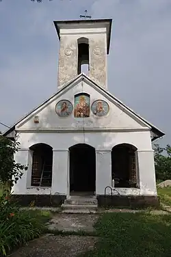 Biserica de lemn „Sfântul Ierarh Nicolae” din Meriș, comuna Broșteni, județul Mehedinți, foto: iunie 2010.
