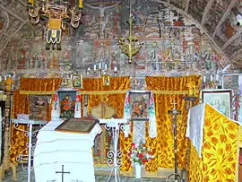 Ansamblul pictural, precum și frumoasa grafie a legendelor și a pisaniilor, îndreptățesc atribuirea executării decorului iconografic al lăcașului „popii” Ioan Zugravul din Deva; diferit, pictura dverelor se datorează zugravului Constantin din Râșca, cel mai de seamă discipol al preotului pictor.
